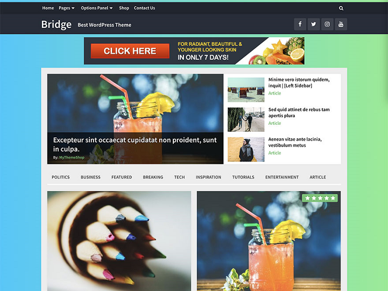 Bridge to elegancko zaprojektowany motyw WordPress, który oferuje wiele przyjaznych układów, szybkość ładowania, wysoką wydajność i zoptymalizowany system reklam oraz inne funkcje premium. Nadaje się do użytku w różnych niszach, takich jak zdrowie, technologia, wiadomości, blogowanie, sport i wiele innych.